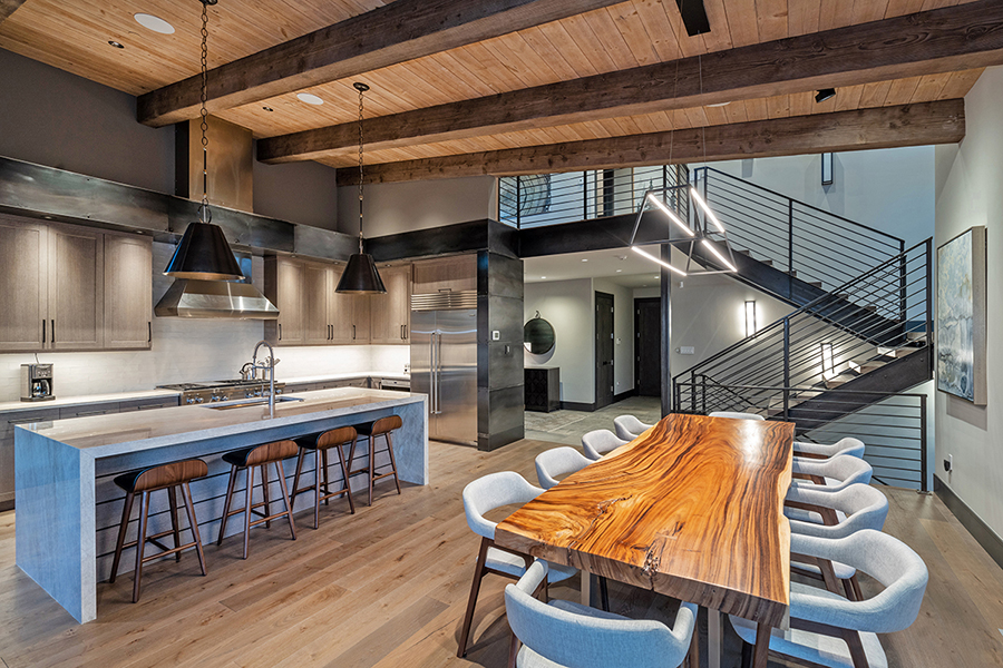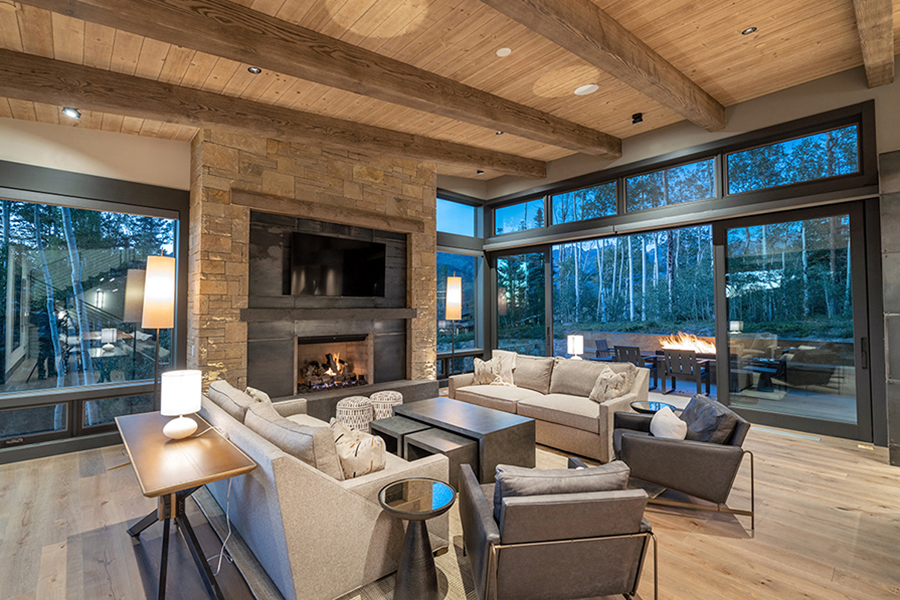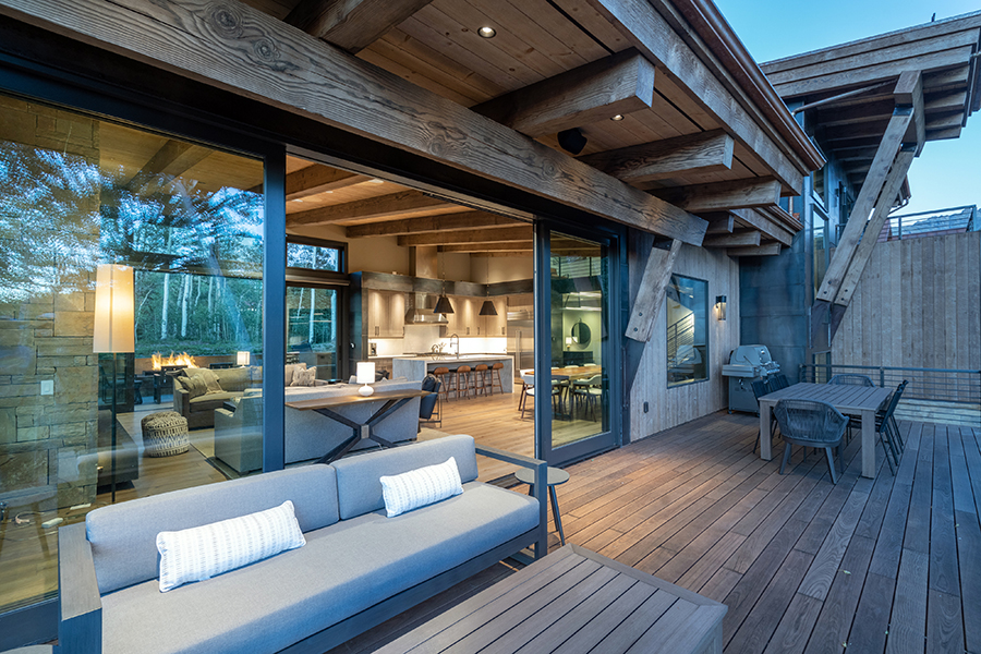 The private residence, designed by Centre Sky Architects, was completed in August 2020 and is a featured property for the Inspirato luxury vacation club. The home includes beautiful, textured Douglas fir timbers with large lift and slide doors providing views to the San Sophia Ridge and western sunsets.