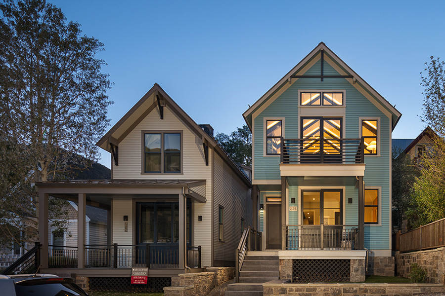 Located in a Historic Residential Zone District one block north of Telluride’s main street, this project consists of two single-family homes built simultaneously. Designed by Tommy Hein Architects, the two residences total approximately 6,500 s.f. including barnwood outbuildings along the alley.