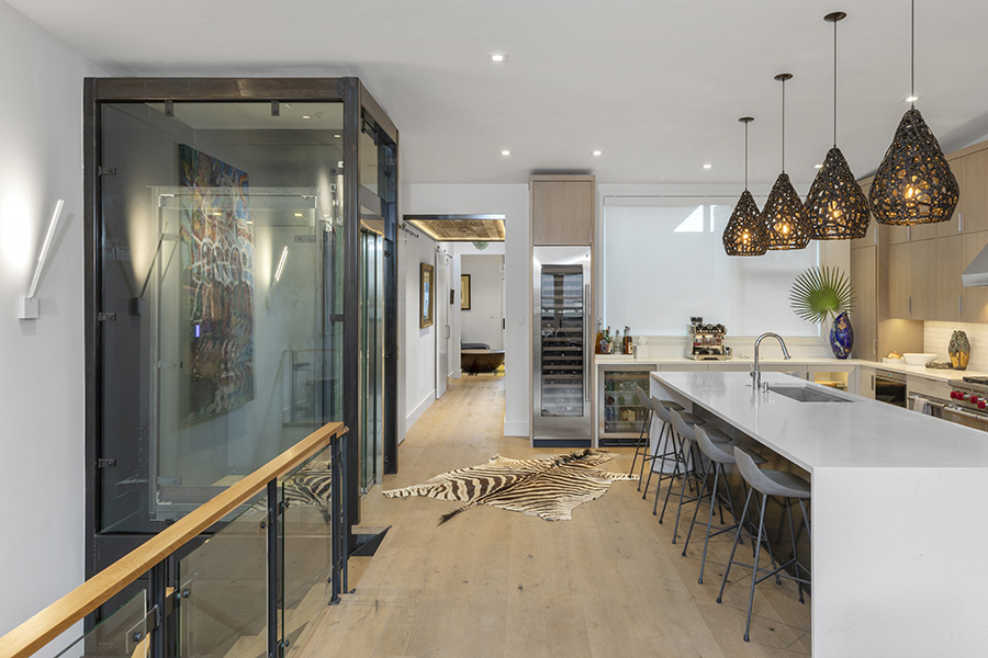 South Pine Street included a 5,000 s.f. residence and a street-level 500 s.f. commercial space with zero setbacks between the neighboring buildings requiring fire resistive construction. The home includes a world-class view of Ingram Falls that is complemented with world-class interior finishes and a glass elevator.